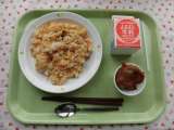 ○今日の献立 ・キムチチャーハン ・牛乳 ・鶏肉のねぎ味噌焼き キムチ...