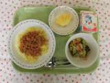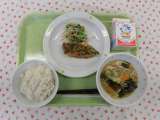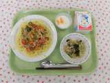★今日の献立 ・チンジャオロース焼きそば ・牛乳 ・わかめのナムル ・杏仁ゼリ...