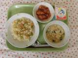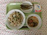 ★今日の献立 ・枝豆とじゃこのチャーハン ・牛乳 ・えびととり肉のチリソース ...