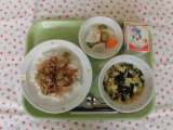 ★今日の献立 ・いわしのかば焼き丼 ・牛乳 ・わかめと野菜のあえもの ・冬瓜の...