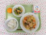 ★今日の献立 ・麦ごはん ・牛乳 ・鶏肉と野菜のみそ煮 ・野菜のごまあえ ・冷...