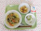 ★今日の献立 ・海鮮あんかけ焼きそば ・牛乳 ・大根ときゅうりのごま風味 ・ビ...