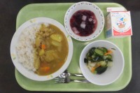 ★今日の献立・チキンカレーライス・わかめサラダ・あじさいゼリー・牛乳 今日のデザ...