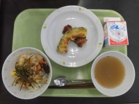 ★今日の献立・鶏飯・かぼちゃとちくわの天ぷら・牛乳 「鶏飯」は鹿児島県奄美で食べ...