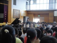 音楽朝会で全校児童の声が響いています。4月から比べると柔らかい響きが増し、合唱が...