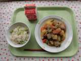 ○今日の献立 ・わかめごはん ・牛乳 ・肉じゃが ・小玉すいか ボリ...