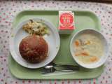 ○今日の献立 ・焼きカレーパン ・牛乳 ・コーンシチュー ・きゃべつと...