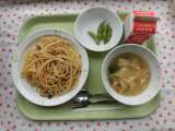 ○今日の献立 ・きのこの和風スパゲッティ ・牛乳 ・卵スープ ・枝豆 ...