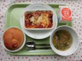 ○今日の献立 ・ミルクパン ・牛乳 ・なす入りミートグラタン ・レタス...