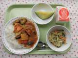 ○今日の献立 ・夏野菜のカレーライス ・牛乳 ・じゃこサラダ ・メロン...