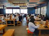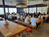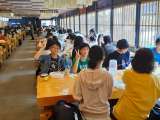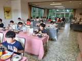宿舎で食べる最後の食事です。みんな味わって食べています。