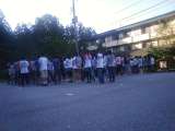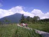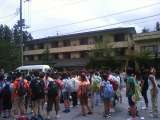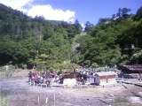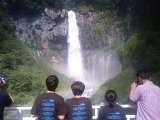 虹のかかった華厳の滝。みんな元気で二日目をスタート。