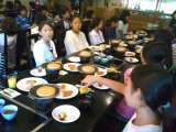 温かいホットケーキの朝食です。まだまだ寝ぼけまなこの子どもたちが多いです。