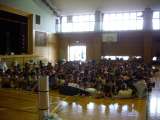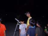 校庭で月の観察をしました。体育館では、就寝の準備です。楽しかった1日目が終わろう...
