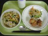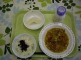 *生揚げのそぼろあんかけ *ご飯 *ひじきのふりかけ *くだもの(なし) *牛乳