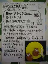*豆入りひじきご飯 *むらくも汁 *お月見だんご *牛乳 今日の「いただきます...
