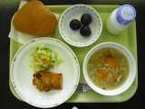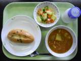 ※マーガリンパン ※タンドリーチキン ※コールスローサラダ ※ベーコン白菜スープ...