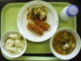 ※さつまいもご飯 ※いかの立田揚げ ※野菜の土佐づけ ※みそけんちん ※牛乳