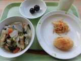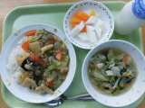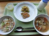 五目うま丼 中華スープ 乳ない豆腐 牛乳