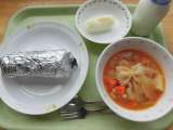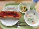 ホットロールサンド 豆入りミネストローネ リンゴ 牛乳