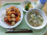 酢豚丼 ザーサイのスープ 華風きゅうり 牛乳
