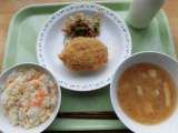 にんじんきびごはん 金平コロッケ 大根のみそ汁 オクラともやしの煮浸し 牛乳