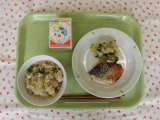 ★今日の献立 ・麦ごはん ・牛乳 ・鮭のみそチーズ焼き ・小松菜とじゃこのおか...