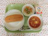 ★今日の給食 ・ジャムコッペパン ・牛乳 ・レンズ豆のトマトシチュー ・もやし...
