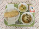 ★今日の献立 ・きなこあげパン ・牛乳 ・ワンタンスープ ・じゃがいものごま酢...