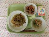 ★今日の献立 ・ソース焼きそば ・牛乳 ・塩ナムル ・お豆かりんとう 今日...