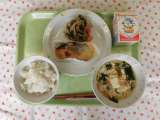 ★今日の献立 ・菊花ごはん ・牛乳 ・さばの一味焼き ・野菜のごまだれかけ ...