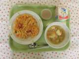 ★今日の献立 ・チェブジェン(セネガル風魚のピラフ) ・牛乳 ・キャベツのスー...