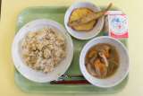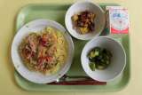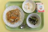 ★今日の献立 ・中華丼 ・わかめのナムル ・桃入りヨーグルト ・牛乳 今日の...