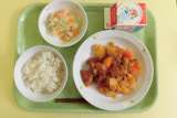 ★今日の献立 ・麦ごはん ・鶏肉の酢豚風炒め ・塩だれキャベツのサラダ ・牛乳...