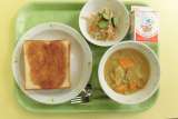 ★今日の献立 ・焼きカレーパン ・野菜スープ ・カフェオレゼリー ・牛乳 今...