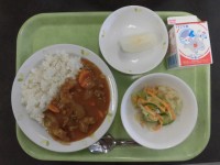 ★今日の献立・きのこのハッシュドポークライス・ツナサラダ・なし・牛乳 今日のくだ...