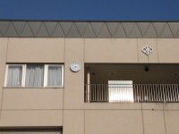 朝にはなかったものです。今、真新しい時計が校舎の壁面に設置されました。月曜日の朝...