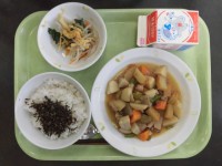 ★今日の献立・むぎごはん・魚のねぎみそ焼き・きざみこんぶの五目煮・吉野汁・牛乳 ...