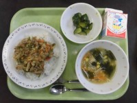 ★今日の献立・チャーハン・ジャンボしゅうまい・中華風野菜スープ・牛乳 今日の主菜は、ジャンボしゅうまいです。給食のしゅうまいは一人1個なので、とても大きいです。豚肉にたまねぎや調味料を入れてよく練り、...