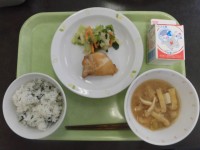 ★今日の献立・わかめごはん・鶏肉の照り焼き・じゃこいりおひたし・豆腐のみそ汁・牛乳 今日の主菜は鶏肉の照り焼きです。鶏肉には「タンパク質」という栄養素が入っています。筋肉や血液などの体をつくるもとにな...