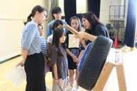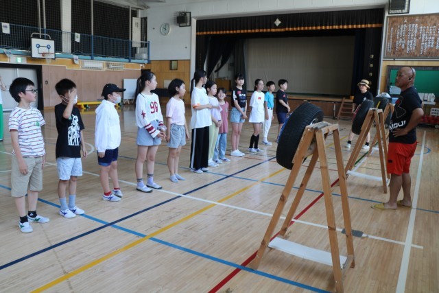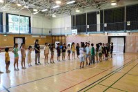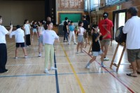 体育館ではフラッグとメジャーの練習です。何度も何度もやって見せてくれる6年生です...