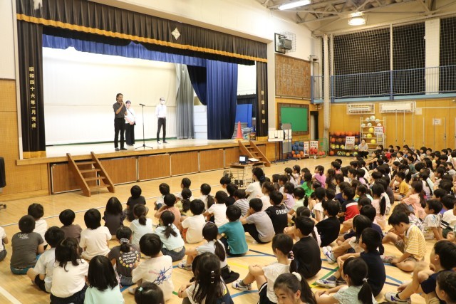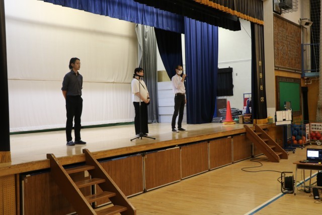 終業式が終わってから、1学期で離任される先生、赤ちゃんを産むためにお休みに入られる先生、生まれたての赤ちゃんのお世話をするために2学期の間だけお休みする先生、3人の先生とお別れのご挨拶をしました。