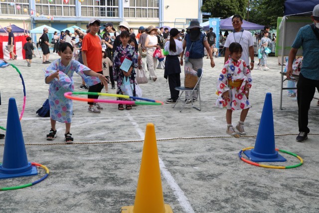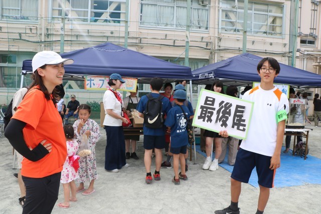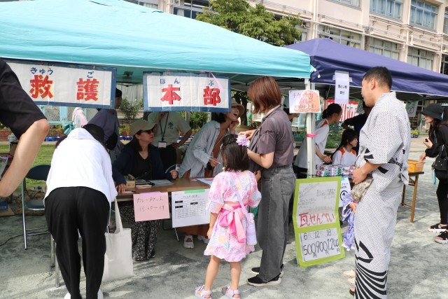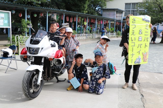 開会式の後お店屋さんも始まりました。パレードを先導してくださった白バイもしばらくいてくださいました。