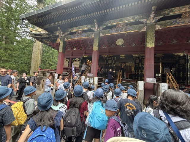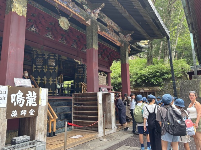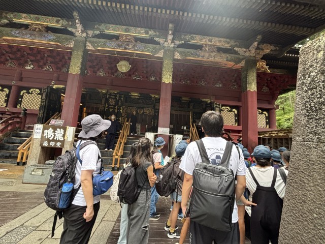 大規模改修を終えた陽明門が、新たな姿でお披露目されています。鮮やかな色彩に蘇り、美しい姿を見せています。有名な眠り猫の説明、そして鳴龍を見学しました。龍のお顔の下で拍子木を打つと、音が共鳴していつまでも鈴のような音が響き渡っていました。
