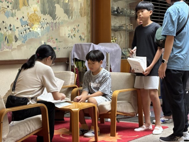 保健係も看護師さんに部屋全員分の検温をして記入した健康カードを持って、班の健康状態を報告をしています。