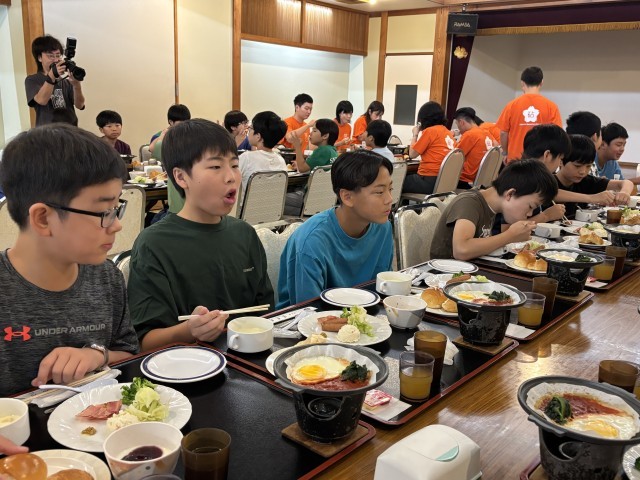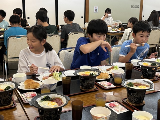 宿での食事もこの朝ごはんが最後です。ボリュームたっぷりの美味しい朝食をしっかりいただきました。