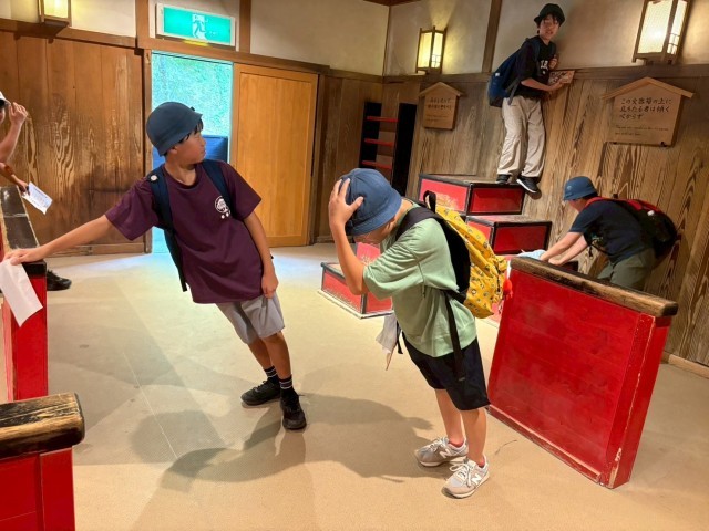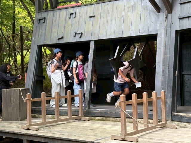 忍者体験をしたり、忍者修行をしたりします。子供達に大人気の忍者修行の館は私のおすすめの館です。この館は平衡感覚がおかしくなるように作られていて楽しいです。