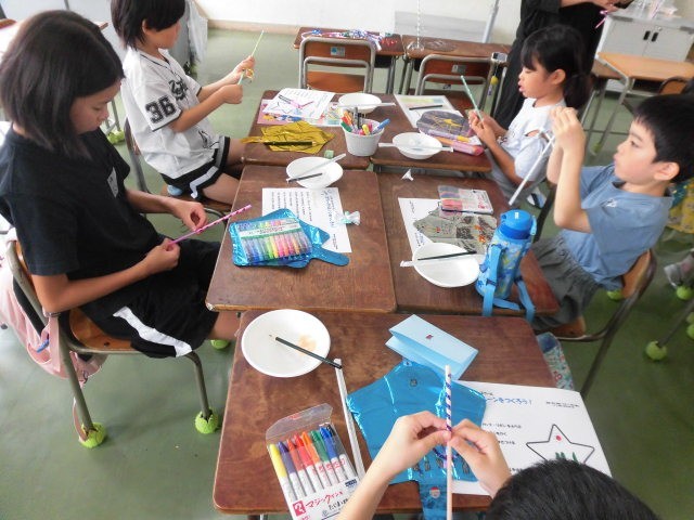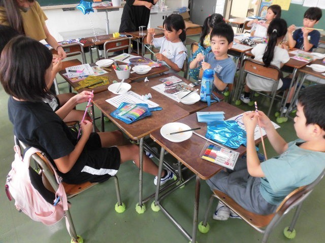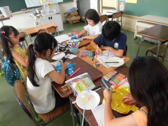 講座を教えてもらう先生から7つのミッションが出され、絵を描いたり、バルーンを膨らませたりと一つ一つのミッションをクリアしていきました。星やハート型の自分だけの特別なスティックバルーンが完成しました!