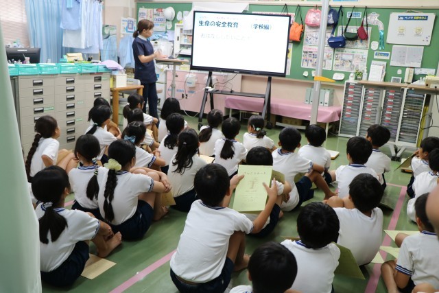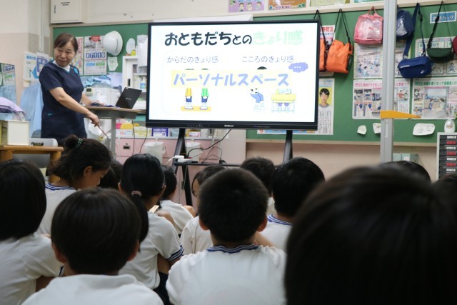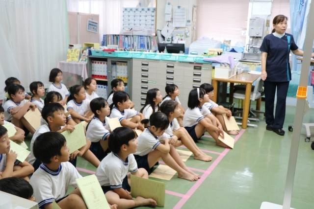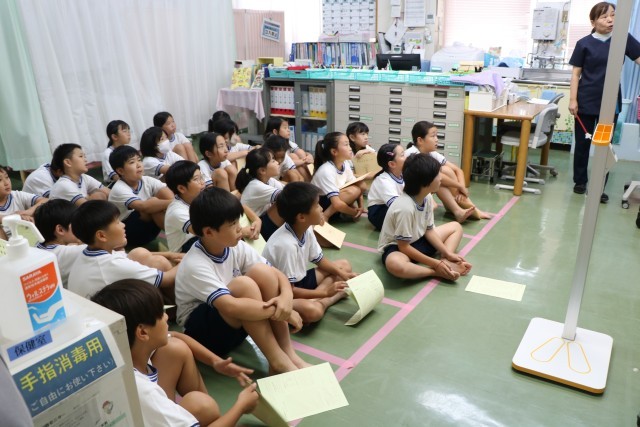 今日は3・4年生の身体計測がありました。それぞれの学年の反応に応じて、話の切り口を変えている養護の先生です。学年、学級によって受け止めかたに違いがあるのも見ていて面白いものです。