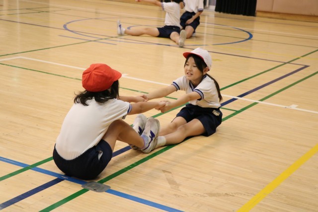 5年生体育の様子です。5年生は2学期から一部教科担任制を導入しています。子どもたちをできるだけ多くの目で見守ること、学習指導の質を高めること、中学校への接続をスムーズにすることなどにおいて教科担任制は有効であると考えます。隣の学級の担任の先生に名前で呼ばれ一緒に学習するのも、いつもと違った緊張感と満足感があります。